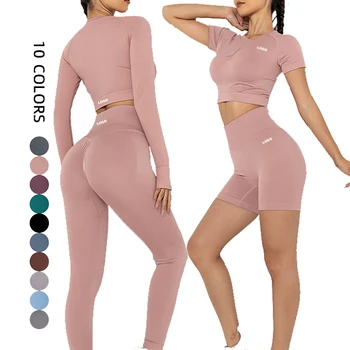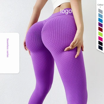• Seamless Peach Jacquard Breathable Four-Way Stretch Spandex/Nylon Gym Sport Yoga Scrunch Butt Trousers Fitness Leggings Workout