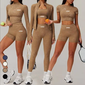 Custom Solid Workout Sets Women Breathable Seamless Contour Active Wear Gym Fitness Plus Size High-Waisted Set Pockets Seamless