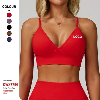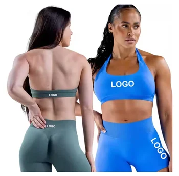 Women's Seamless Back Workout Bra Double Strap Quick-Dry Sports Top for Running Fitness Yoga Breathable Front Padded Halter
