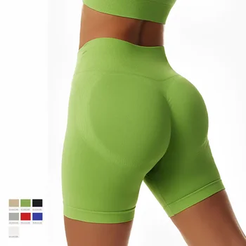 Custom Processing High Waist Yoga Shorts Elastic Closure Solid Pattern Tinched Hip Fitness Pants 7137 Sports Running Shorts