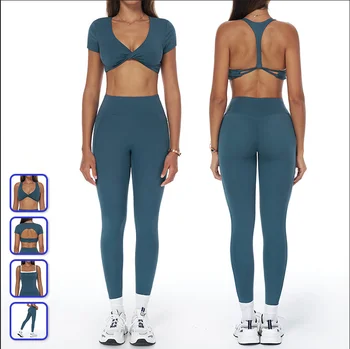 Yun Sense Yoga Fitness Suit Breathable Comfortable Waist Solid Pattern High Stretch for Leisure Outer Wear Front 2pcs Seamless