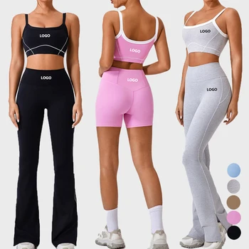 Women's Sports Bras Fitness Outdoor Running Sports Bike Shorts Flared Pants for Fitness Breathable Front Twist Halter Padded